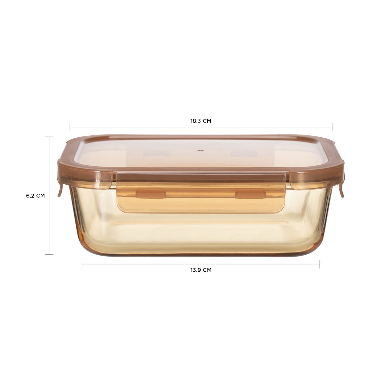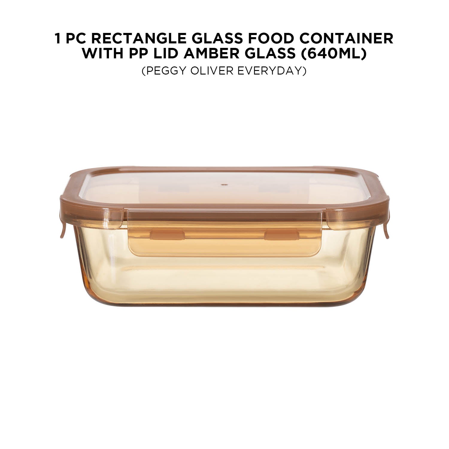 Rectangle Glass Food Container With Pp Lid Amber Glass