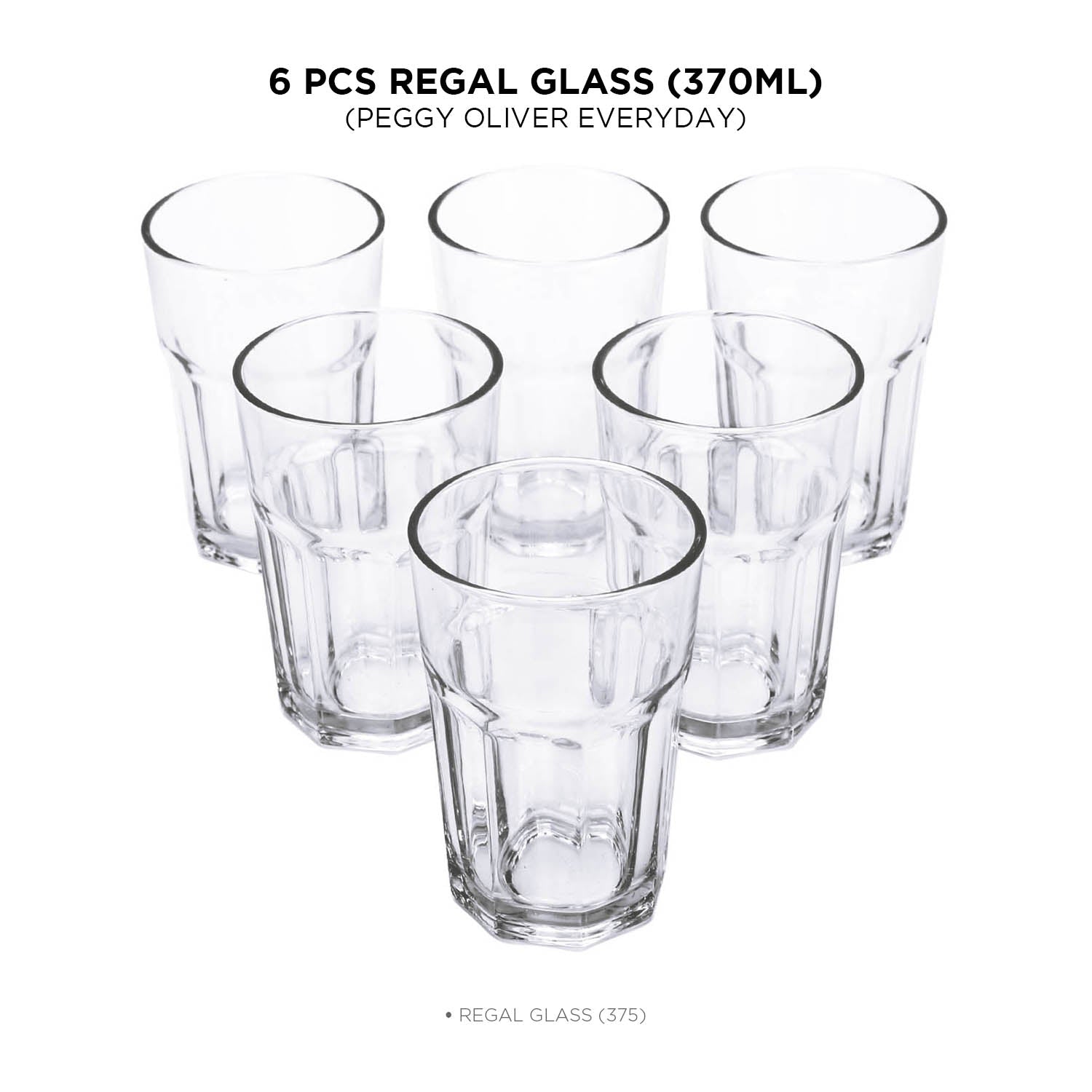 Introducing the Regal 370 ml Glass by Peggy Oliver, under the Peggy Oliver Everyday subbrand. Made from high-quality soda lime glass, these glasses are designed to enhance your everyday dining experience. the Regal glass is perfect for enjoying a variety of beverages, from water and juice to cocktails and more. Its elegant design adds a touch of sophistication to any table setting. Choose Peggy Oliver Everyday for a blend of style, quality, and safety in your drinkware collection.