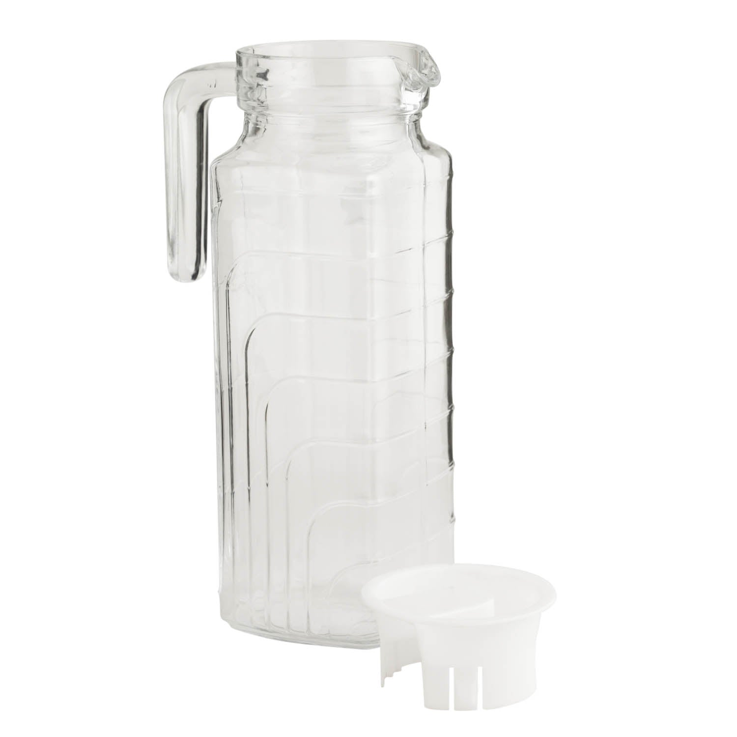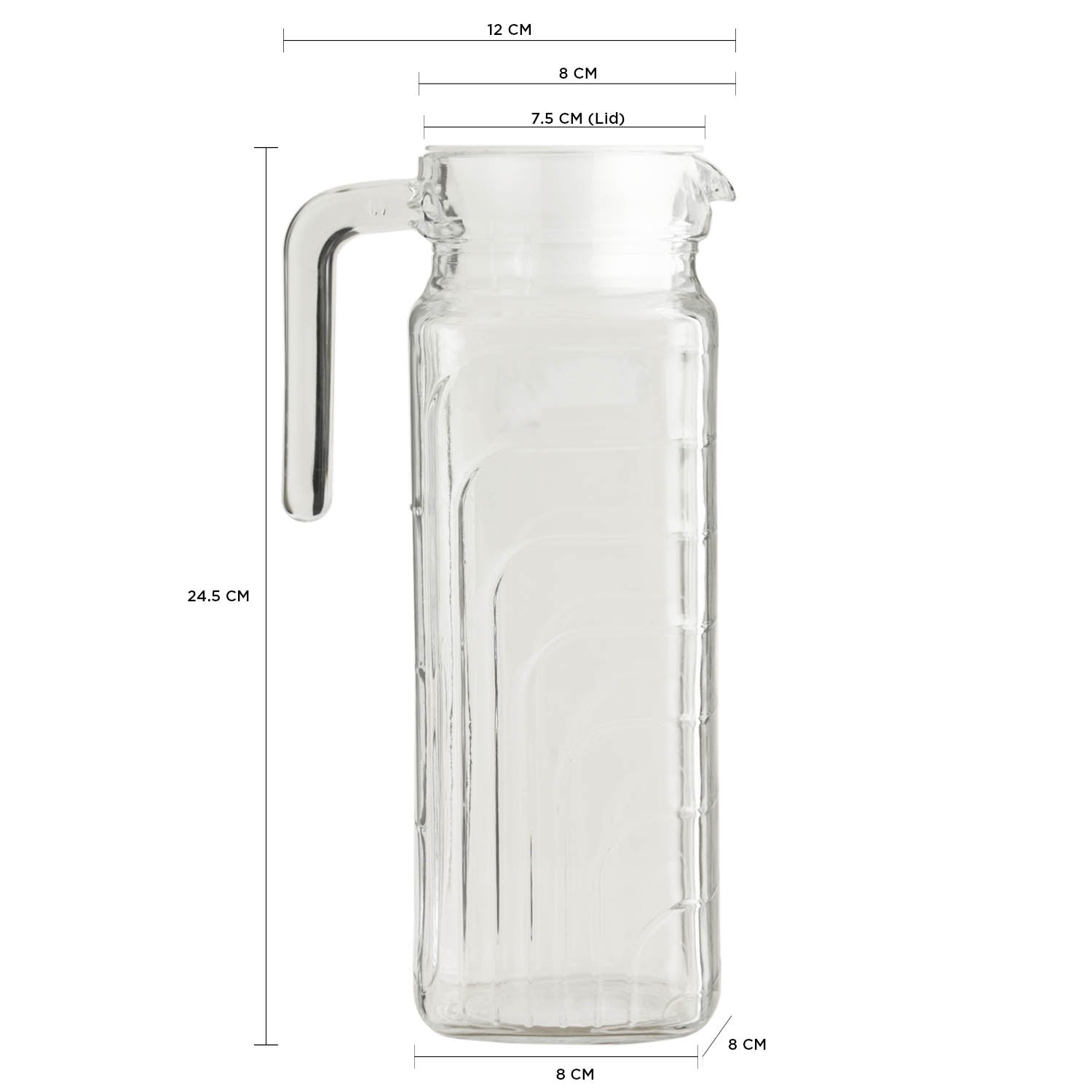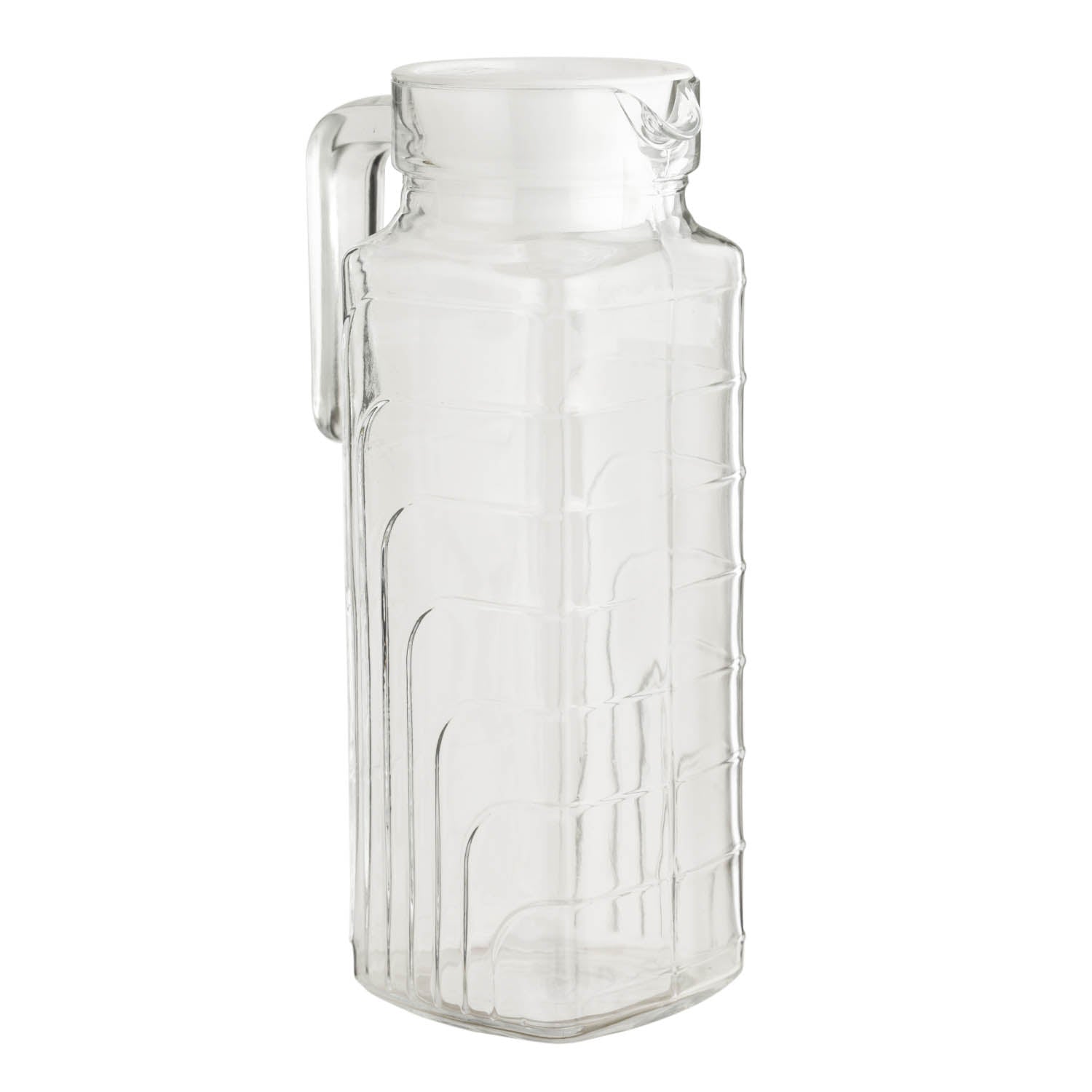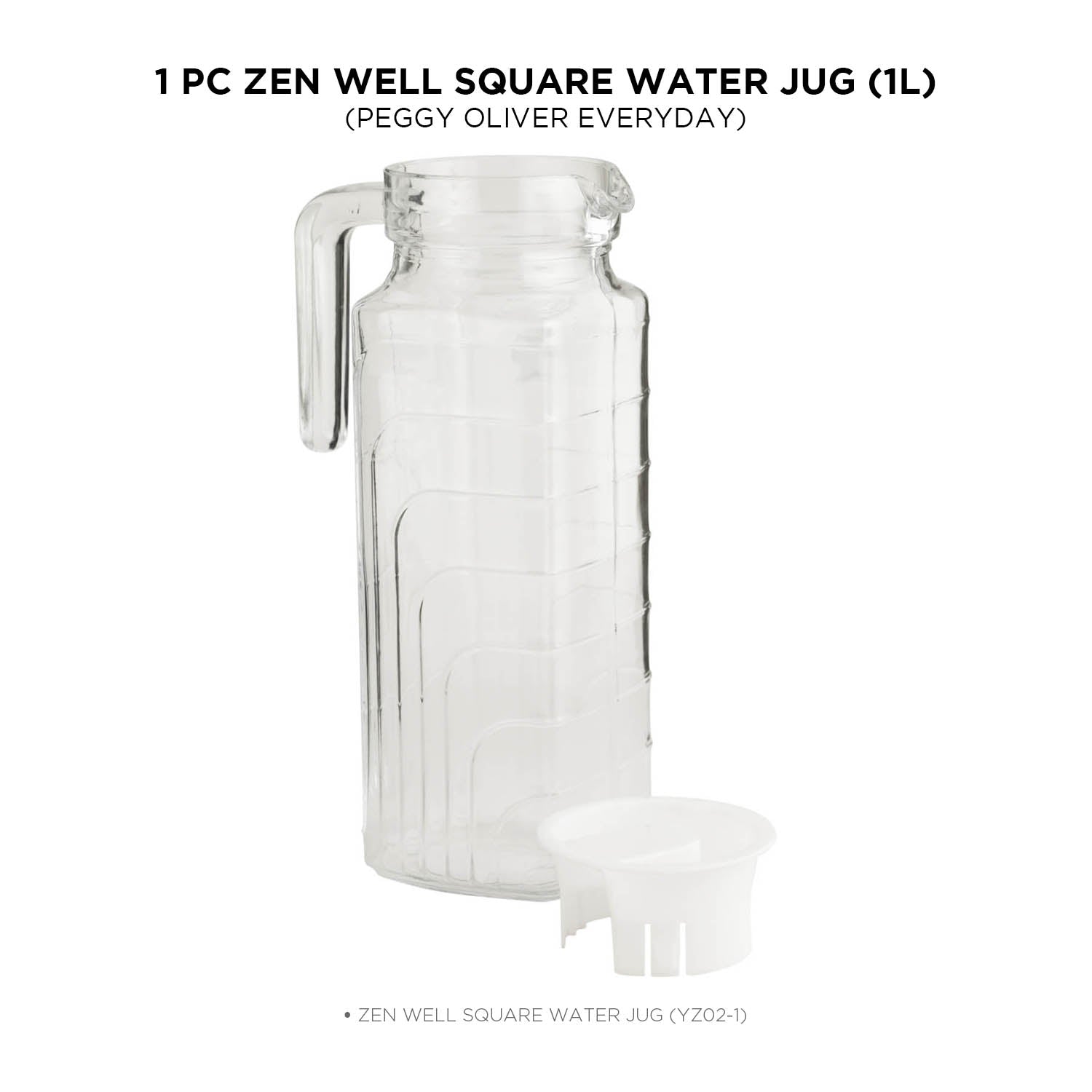 Introducing the Zen Well Square Water Jug, 1.3 L by Peggy Oliver, under the Peggy Oliver Everyday subbrand. Crafted from premium soda lime glass, this jug combines elegance with practicality for your everyday hydration needs. With a 1.3-liter capacity, th
